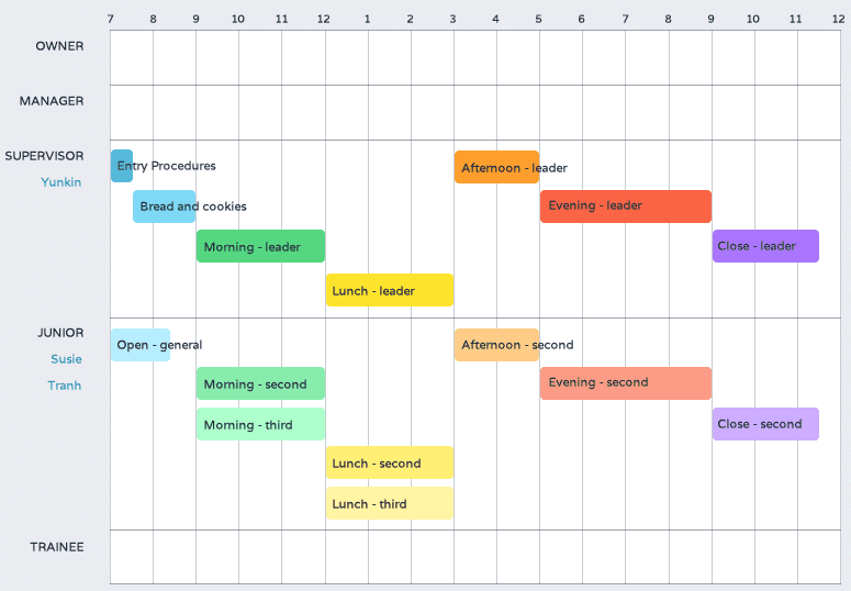 Clicking anywhere else on the left screen would show the entire day's roster again